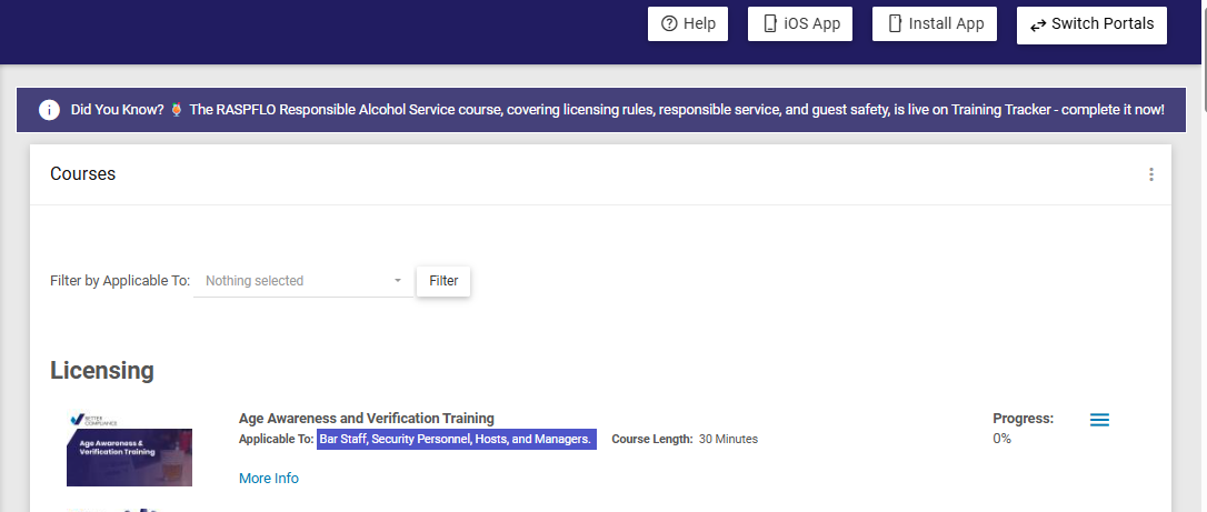 You’ll see Training Courses in your menu bar - click it to proceed.